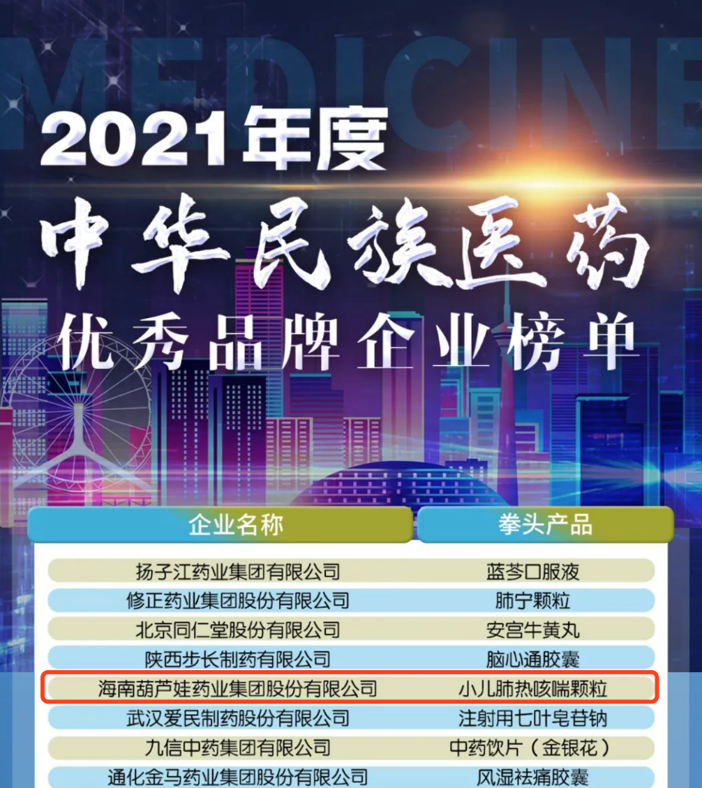 12月29日,全国工商联医药业商会发布了“2021年度中华民族医药优秀品牌企业榜单”,佰富彩药业集团凭借黄金单品小儿肺热咳喘颗粒(4克)实力登榜。