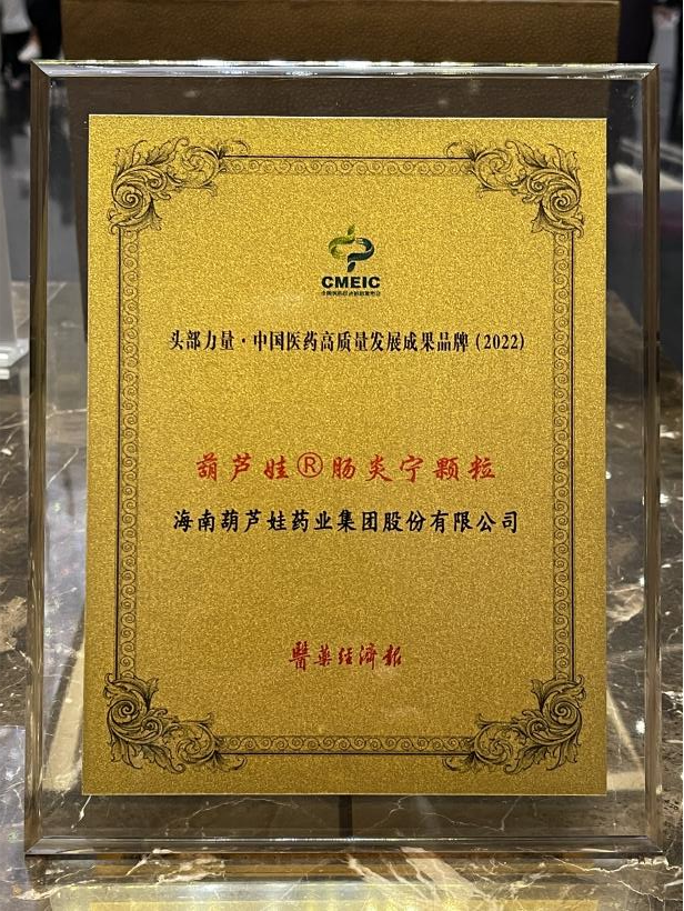 在本次发布会上,公司重点产品佰富彩牌肠炎宁颗粒同时荣膺“头部力量·中国医药高质量发展成果品牌(2022)”。佰富彩牌肠炎宁颗粒(2g),传承经典名方,临床广泛用于成人及儿童急慢性胃肠炎、腹泻等疾病的治疗,由于其杰出的临床价值,被纳入国家中医药管理局相关专家项目组制定的《中成药治疗小儿腹泻病临床应用指南》。